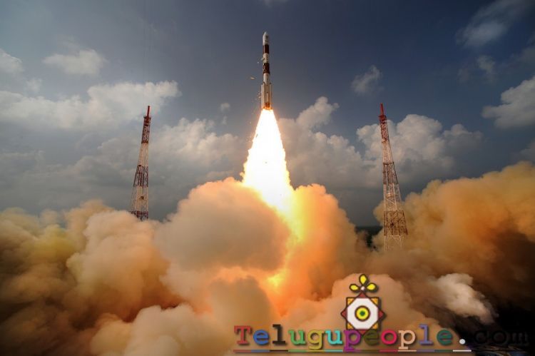 PSLV-C25 launch vehicle carrying the Mars Orbiter probe as its payload lifting off from the launch pad in Sriharikota.