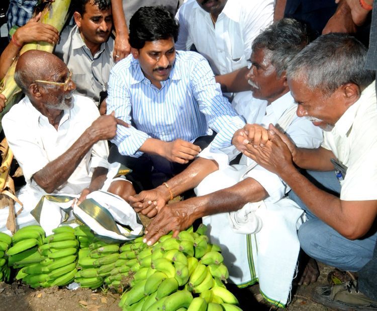 YS Jagan Mohan Reddy interacting with farmers who lost their standing crops in the destruction caused by cyclone Helen in Cheyyeru village in Mummadivaram constituency of East Godavari dist on Tuesday.