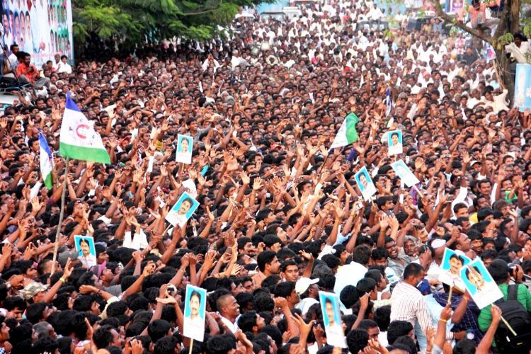 YSRCP president Sri YS Jagan Mohan Reddy addressing massive gathering at Samaikya Sankharavam meeting in Kuppam of Chittoor dist on Saturday.