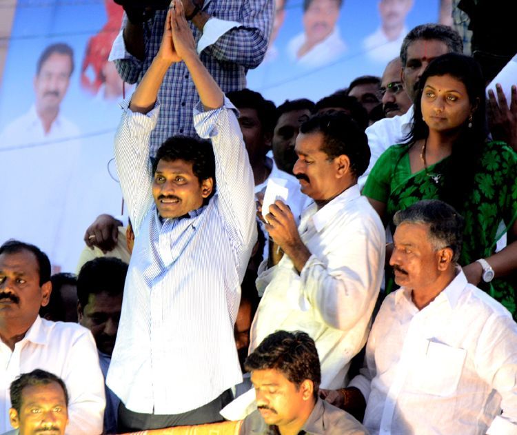 YSRCP president Sri YS Jagan Mohan Reddy addressing massive gathering at Samaikya Sankharavam meeting in Kuppam of Chittoor dist on Saturday.