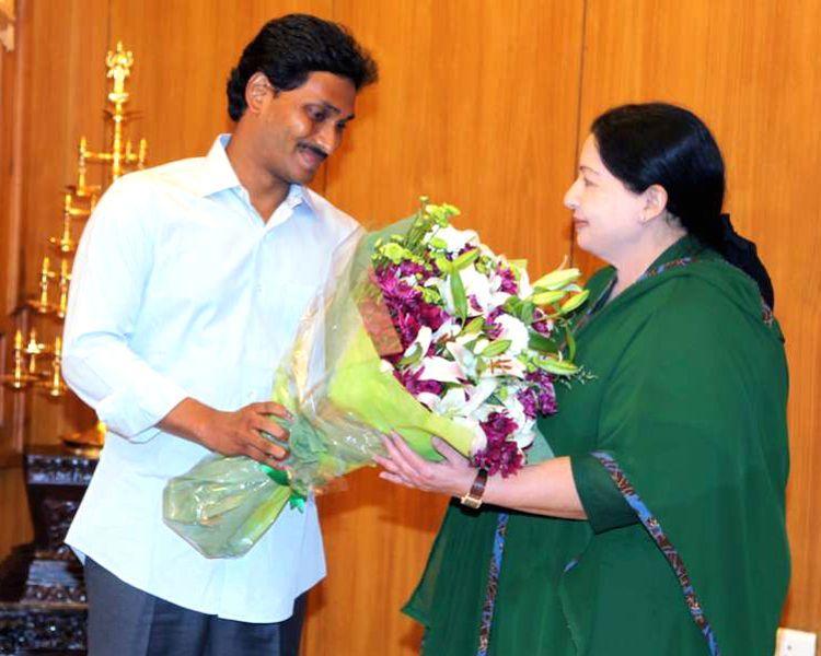 YSRCP president YS Jaganmohan Reddy meeting Tamilnadu Chief Minister and AIADMK chief Jayalalita in Chennai on Wednesday.