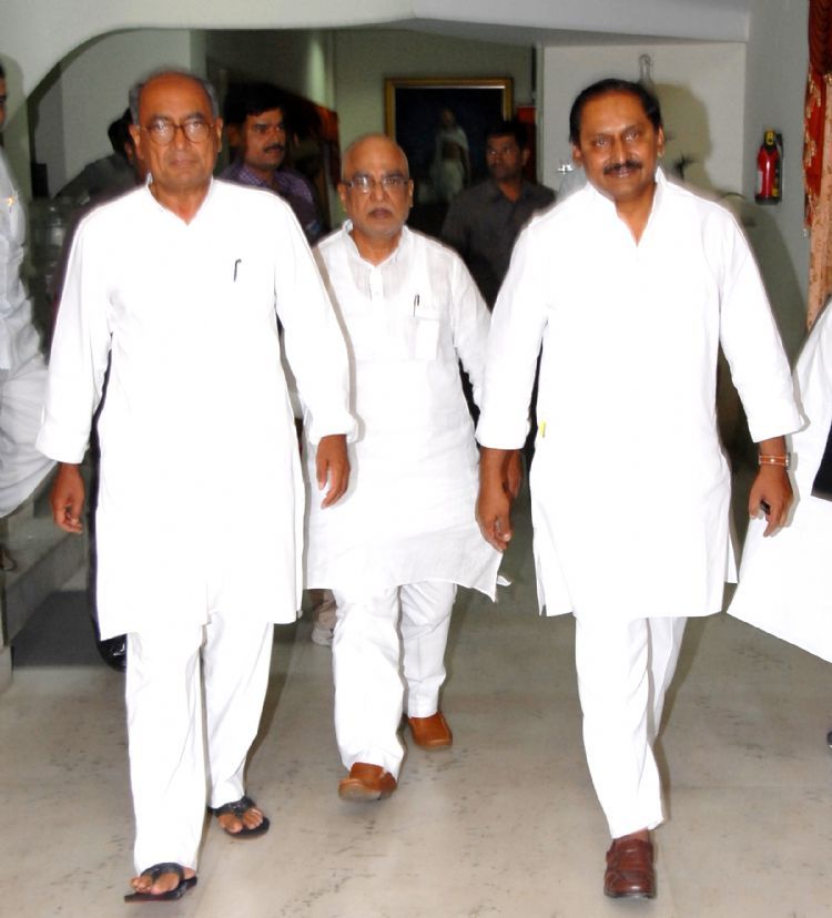 Chief Minister N Kiran Kumar Reddy meeting incharge of AP Congress affairs Digvijay Singh at Lake View guest house here on Thursday.