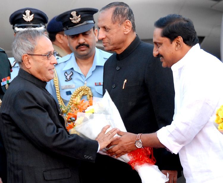 Governor ESL Narasimhan, Chief Minister N Kiran Kumar Reddy seen receiving President of India Pranab Mukherji at Hakimpet Air Force Station on Thursday. President will be in the city, as part of his winter soujourn, till end of this month.