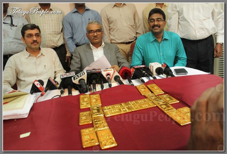 Chief Commissioner central Excise Hyderabad Mr. B B Prasad Mr KK Singh commissioner , &R Manoher addl commissioner , with 18 KG gold biscuits seized from Three Singapore National carrying 6 kg each persons totals Gold 18 kg , worth Rs 4.5 cores , Arrested at shamshabad Rajiv Gandhi International Airport on 20th Dec this Year central Excise Hyderabad total gold seized 60 kg.