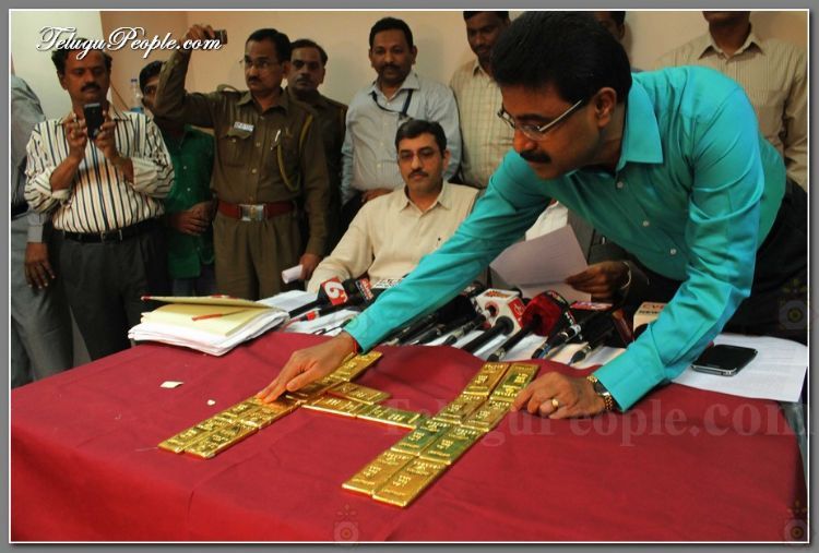 Chief Commissioner central Excise Hyderabad Mr. B B Prasad Mr KK Singh commissioner , &R Manoher addl commissioner , with 18 KG gold biscuits seized from Three Singapore National carrying 6 kg each persons totals Gold 18 kg , worth Rs 4.5 cores , Arrested at shamshabad Rajiv Gandhi International Airport on 20th Dec this Year central Excise Hyderabad total gold seized 60 kg.