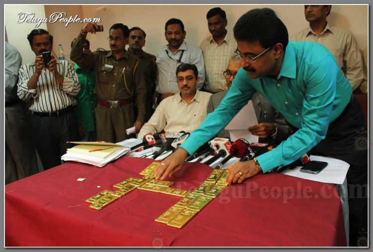 Chief Commissioner central Excise Hyderabad Mr. B B Prasad Mr KK Singh commissioner , &R Manoher addl commissioner , with 18 KG gold biscuits seized from Three Singapore National carrying 6 kg each persons totals Gold 18 kg , worth Rs 4.5 cores , Arrested at shamshabad Rajiv Gandhi International Airport on 20th Dec this Year central Excise Hyderabad total gold seized 60 kg.