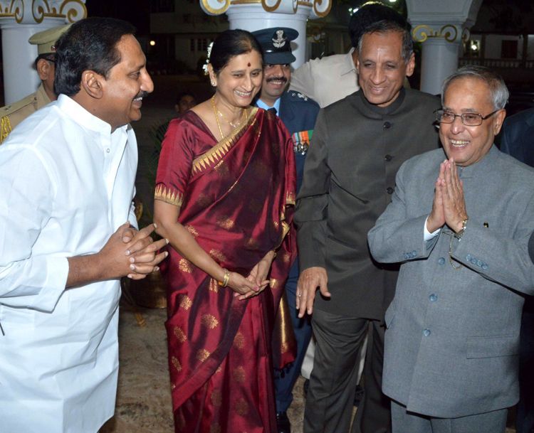Chief Minister N Kiran Kumar Reddy greeting President Pranab Mukherjee at a dinner hosted by Governor at Raj Bhavan on Tuesday.