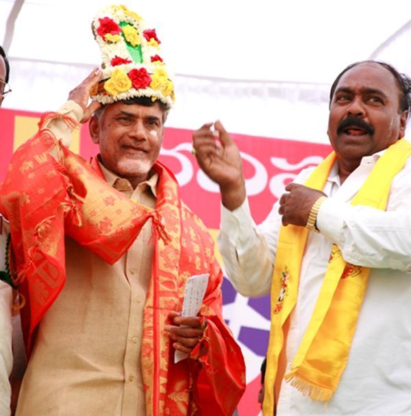 TDP president N Chandrababu Naidu at Praja Garjana meeting in Tirupati on Sunday.