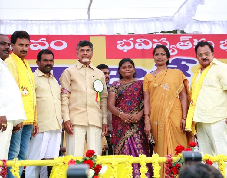 TDP president N Chandrababu Naidu at Praja Garjana meeting in Tirupati on Sunday.