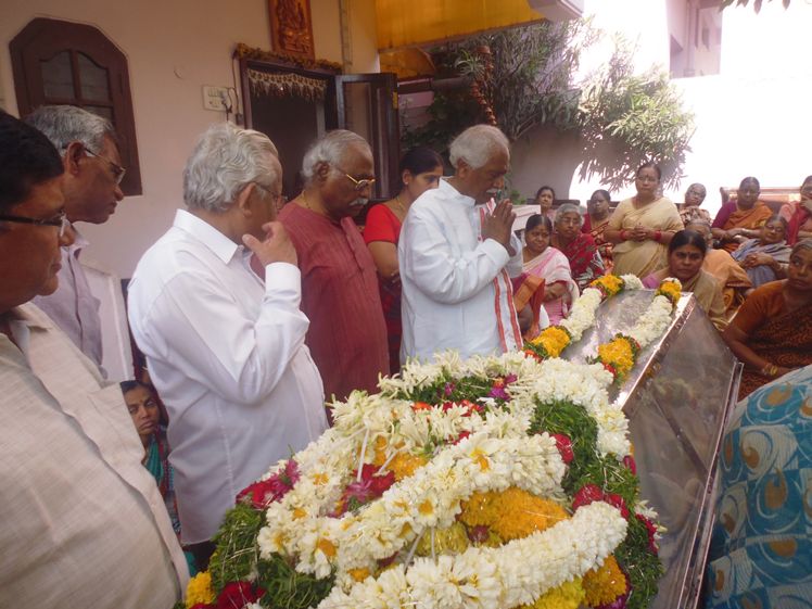 Sri Bandaru Dattatraya former Union Minister and BJP National Vice President paid floral tributes to Sri Koride Uma Kanth Rtd Chief Engineer, TJS Founder Chief, MAA Hyderabad founder President, prominent Telangana Activist and Swayam Sevak at his residence in Ramanthapur, Hyderabad and expressed condolences to his family members and participated in last rites on Sunday 26th January.