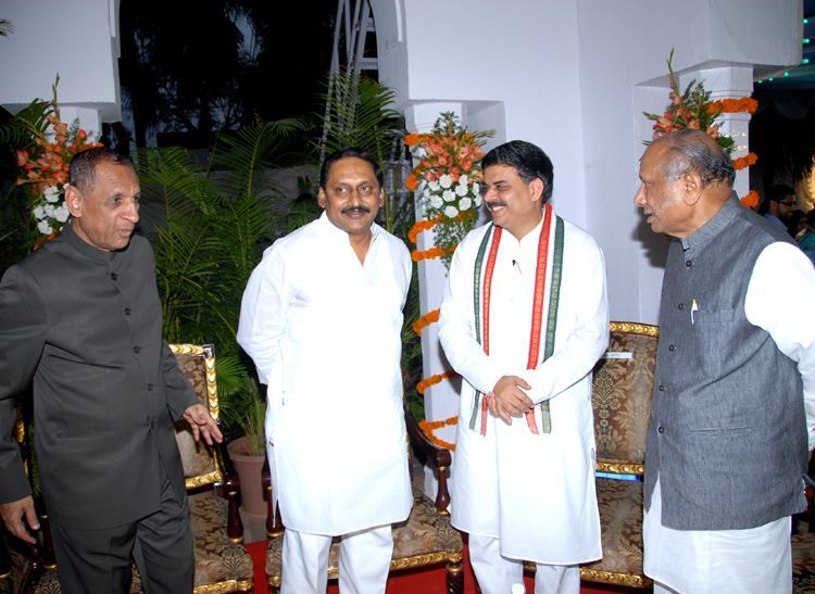 Chief Minister N Kiran Kumar Reddy with Speaker N Manohar, Governor ESL Narasimhan and Legislative Council Chairman A Chakrapani at the At Home function in Raj Bhavan on Sunday