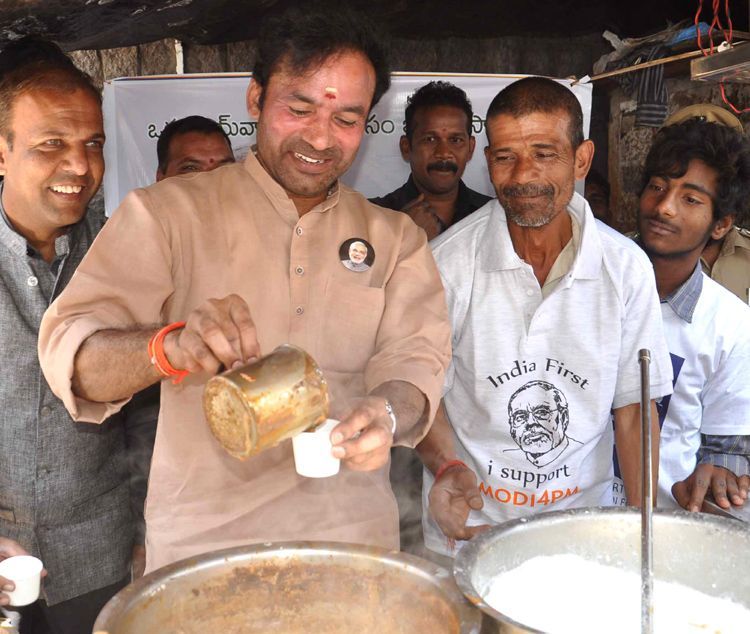 BJP state president Kishan Reddy serving Namo Chai during his campaign for BJP prime minister aspirant Narendra Modi in Hitech City on Thursday.