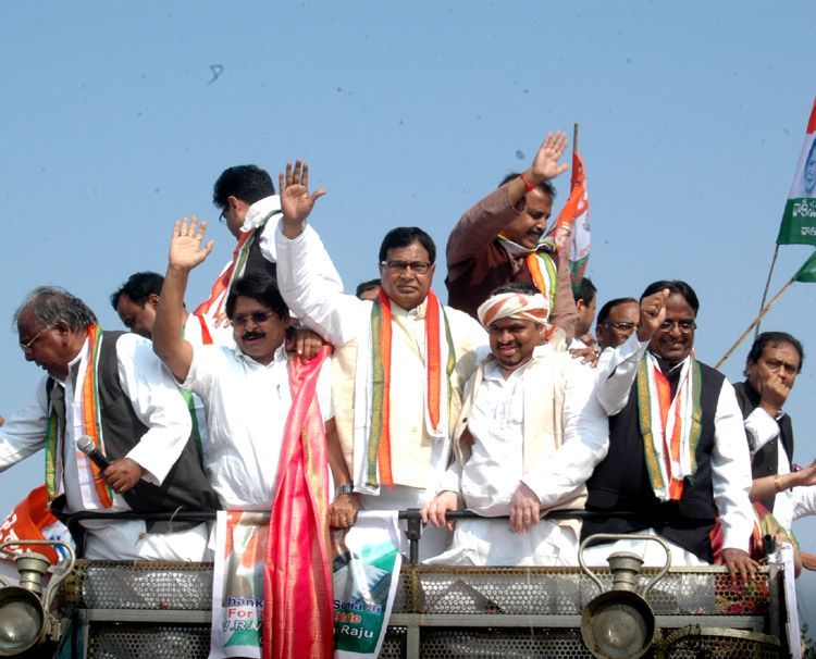 Telangana Congress leaders, including state, central ministers and MPs arrives at a rousing reception in Hyderabad on their return from New Delhi on Sunday.