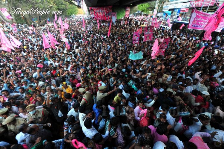 Pink Carpet Welcome: TRS president K Chandrasekhar Rao arrives to a tumultuous welcome accorded by tens of thousands of party activists at Begumpet airport in Hyderabad on Wednesday. Rao later was taken in a rally to Telangana martyr’s memorial at Gun Park near Assembly.