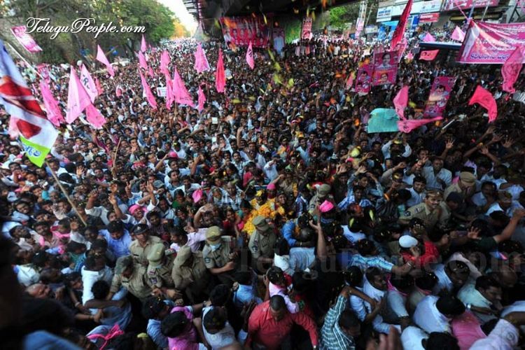 Pink Carpet Welcome: TRS president K Chandrasekhar Rao arrives to a tumultuous welcome accorded by tens of thousands of party activists at Begumpet airport in Hyderabad on Wednesday. Rao later was taken in a rally to Telangana martyr’s memorial at Gun Park near Assembly.