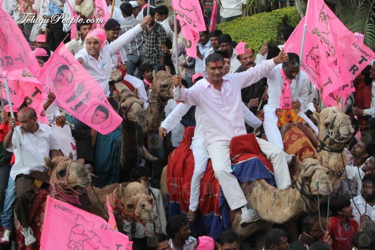 Pink Carpet Welcome: TRS president K Chandrasekhar Rao arrives to a tumultuous welcome accorded by tens of thousands of party activists at Begumpet airport in Hyderabad on Wednesday. Rao later was taken in a rally to Telangana martyr’s memorial at Gun Park near Assembly.