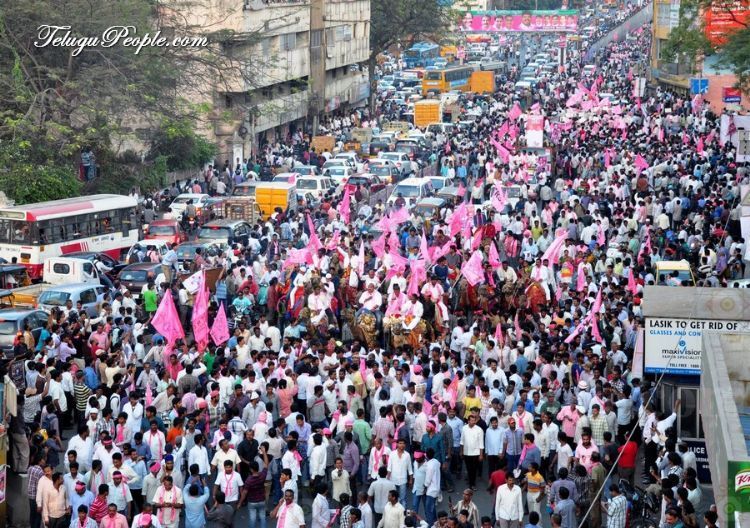 Pink Carpet Welcome: TRS president K Chandrasekhar Rao arrives to a tumultuous welcome accorded by tens of thousands of party activists at Begumpet airport in Hyderabad on Wednesday. Rao later was taken in a rally to Telangana martyr’s memorial at Gun Park near Assembly.