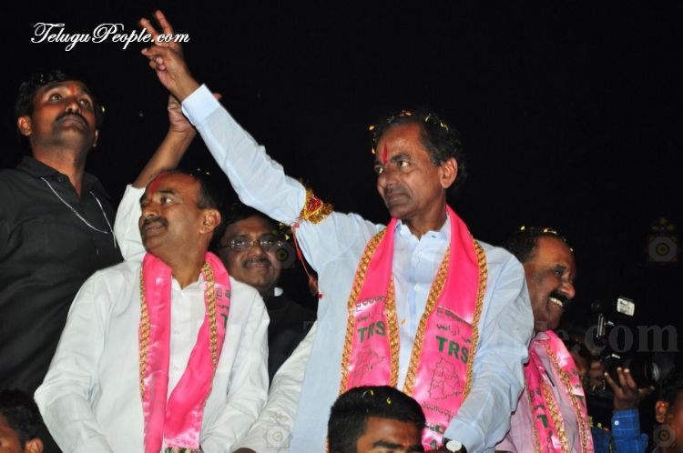 Pink Carpet Welcome: TRS president K Chandrasekhar Rao arrives to a tumultuous welcome accorded by tens of thousands of party activists at Begumpet airport in Hyderabad on Wednesday. Rao later was taken in a rally to Telangana martyr’s memorial at Gun Park near Assembly.