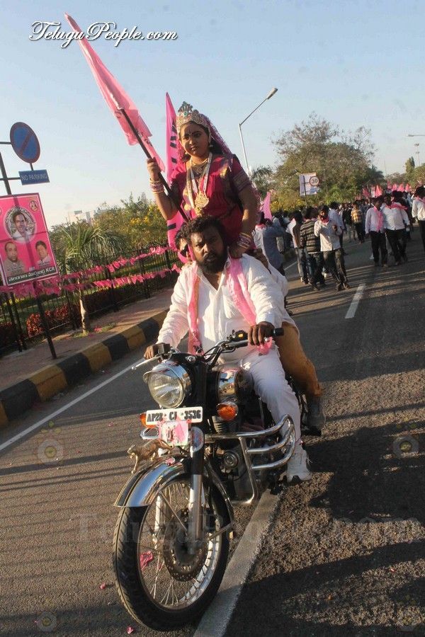 Pink Carpet Welcome: TRS president K Chandrasekhar Rao arrives to a tumultuous welcome accorded by tens of thousands of party activists at Begumpet airport in Hyderabad on Wednesday. Rao later was taken in a rally to Telangana martyr’s memorial at Gun Park near Assembly.