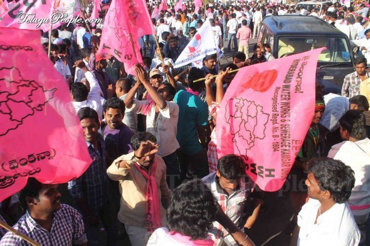 Pink Carpet Welcome: TRS president K Chandrasekhar Rao arrives to a tumultuous welcome accorded by tens of thousands of party activists at Begumpet airport in Hyderabad on Wednesday. Rao later was taken in a rally to Telangana martyr’s memorial at Gun Park near Assembly.