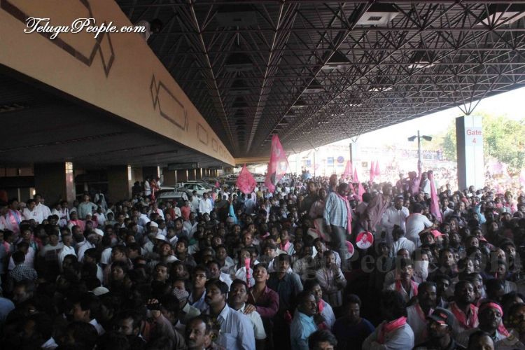 Pink Carpet Welcome: TRS president K Chandrasekhar Rao arrives to a tumultuous welcome accorded by tens of thousands of party activists at Begumpet airport in Hyderabad on Wednesday. Rao later was taken in a rally to Telangana martyr’s memorial at Gun Park near Assembly.