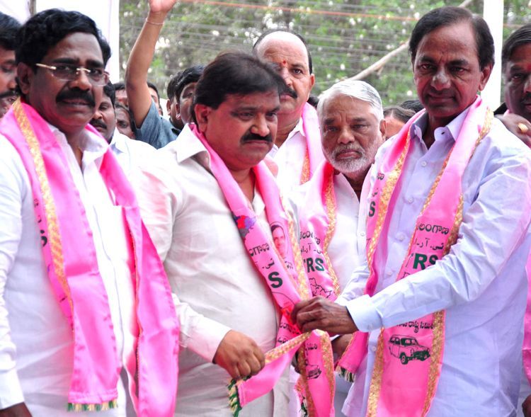 TDP MLAs Mahender Reddy and KS Ratnam Friday joined TRS in the presence of party supremo K Chandersekhar Rao along with hunderds of their supporters at Telangana Bhavan in Hyderabad.