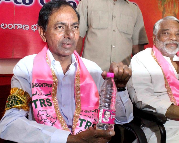 Telangana Rashtra Samiti supremo K Chandrasekhara Rao speaking at party’s politbureau meeting held at Telangana Bhavan on Monday.