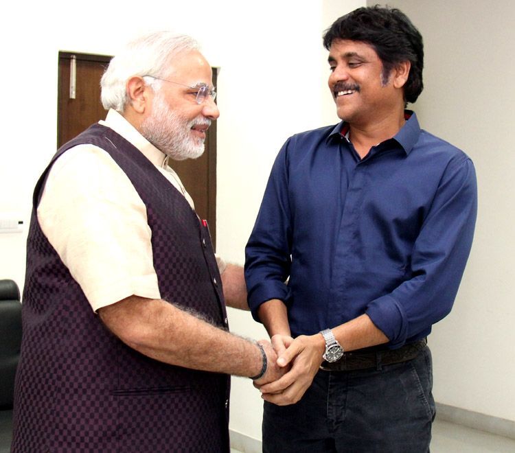 Actor Akkineni Nagarjuna met BJP prime minister candidate Narendra Modi today at Gandhinagar in Gujrat. Both discussed prevailing political conditions in the country and AP in their hour long meeting.
