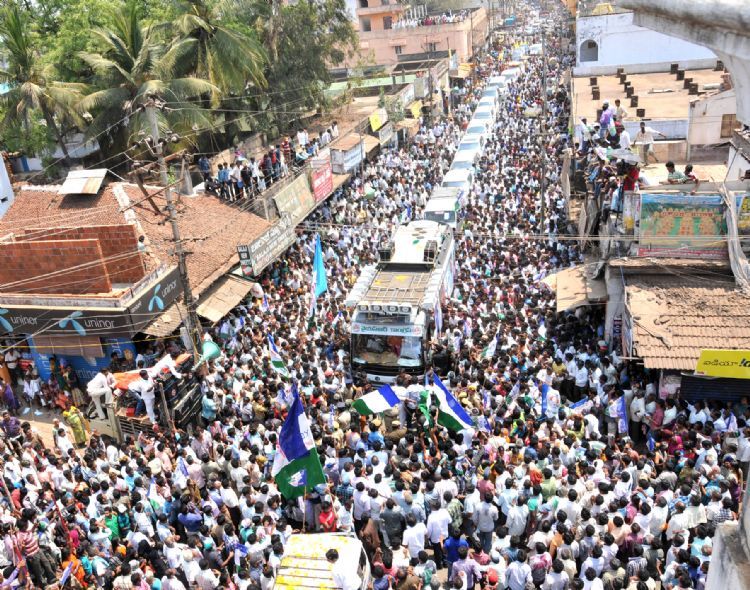 YS Sharmila addressing a huge gathering in Nuzivid of Krishna dt. on Wednesday as part of YSR Janabheri poll campaign.