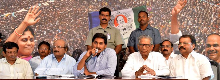 YSRCP president YS Jaganmohan Reddy releasing party's election manifesto at Lotus Pond on Sunday.