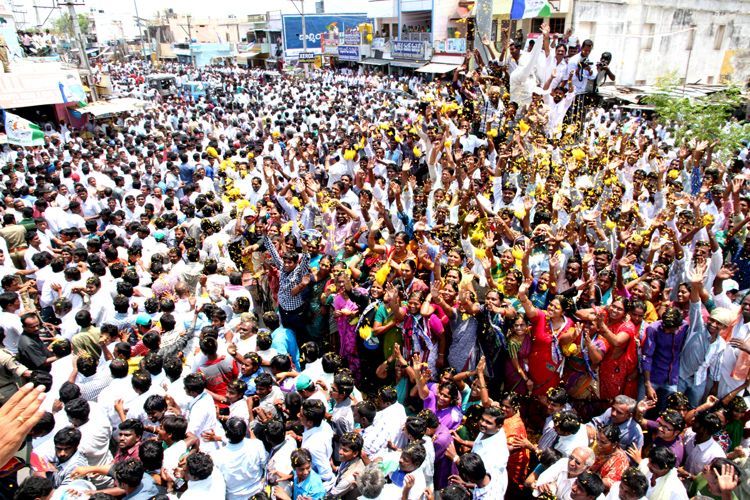 Pulivendula town turns a sea of humanity extending warm welcome to YSRCP president Sri YS Jagan Mohan Reddy when he arrives here to file his nomination papers for Pulivendula assembly seat on Thursday.