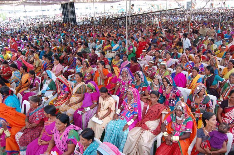 Congress vice-president Rahul Gandhi addresses a public meeting in Mahbubnagar on Monday. Telangana PCC chief Ponnala Lakshmaiah, Union minister Jaipal Reddy, Uttam Kumar Reddy were also present.