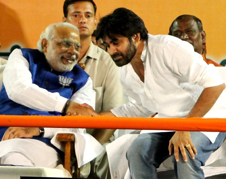 BJP prime minister nominee Narendra Modi, TDP president N Chandrababu Naidu, actor, Jenasena chief Pawan Kalyan participated in a joint public meeting held in LB Stadium in Hyderabad on Tuesday.
