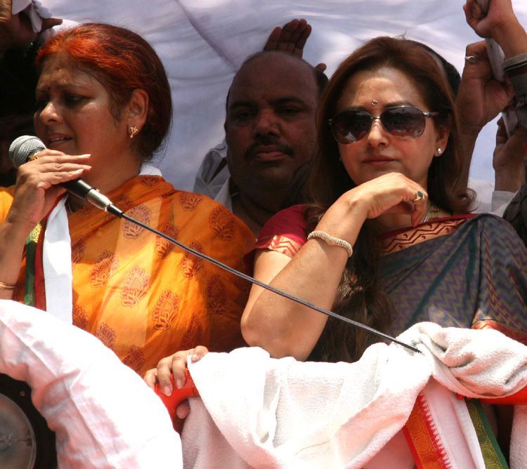 Yesteryear actress and MP Jayaprada campaigning for Congress Secunderabad Assembly nominee Jayasudha in Secunderabad on Sunday.