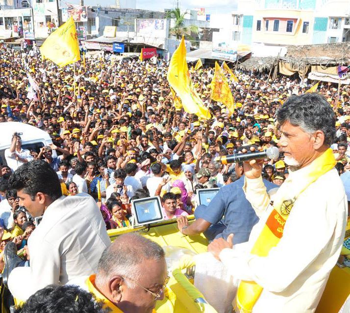 TDP President N.Chandra Babu Naidu road show at Prakasam, Guntur and Krishna districts on Monday, the last day of campaigning for elections in Seemandhra.