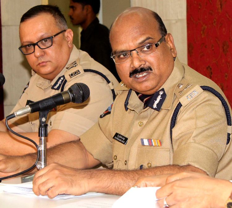 DGP Prasada Rao speaking to media persons in Hyderabad on Tuesday about security arrangements for tomorrow's polling in Seemandhra districts.