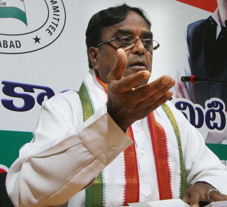 Telangana Pradesh Congress Committee president Ponnala Lakshmaiah addressing media persons at Gandhi Bhavan on Saturday.