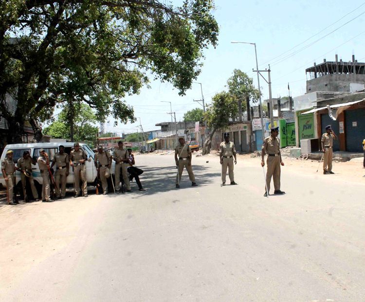 Police are on watch at a picket in old city of Hyderabad on Wednesday after tension gripped the area following communal clashes, arson and police firing.