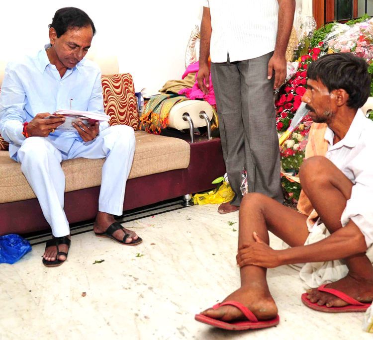 TRS chief, Telangana chief minister designate K Chandrasekhara Rao got busy even before assuming office. His residence here in Jubilee Hills flooded with scores of visitors and people. In this picture KCR going through a written appeal made by an aggrevied poor farmer on Wednesday.