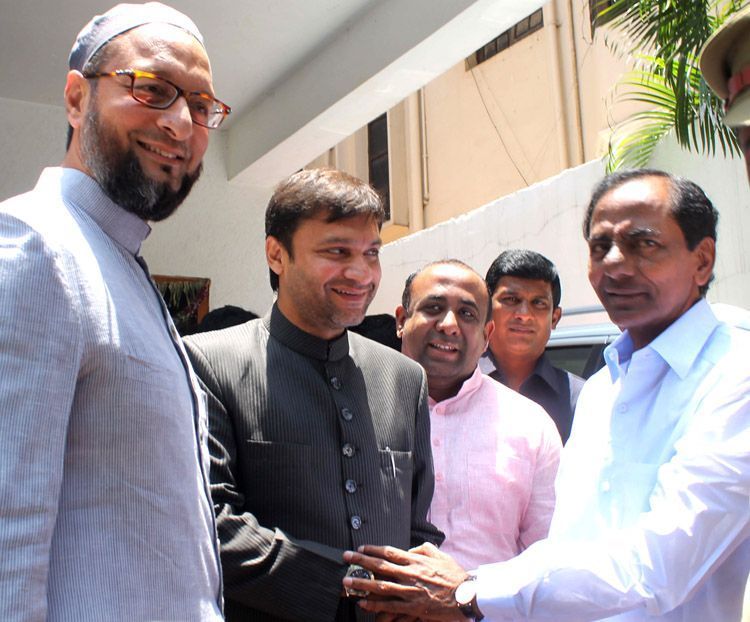 MIM president Asaduddin Owaisi and his brother Akbaruddin Owaisi called on TRS chief and Telangana chief minister designate at the latter's residence here on Thursday.