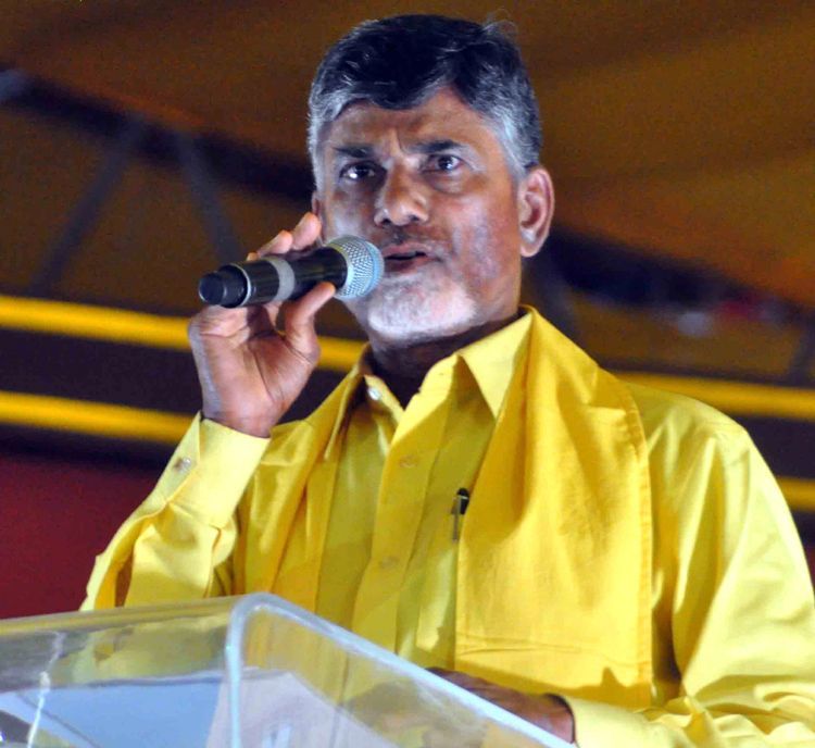 TDP supremo and Andhra Pradesh chief minister designate N Chandrababu Naidu at inauguration of party's two day enclave Mahanadu began at Gandipet in Hyderabad on Tuesday.