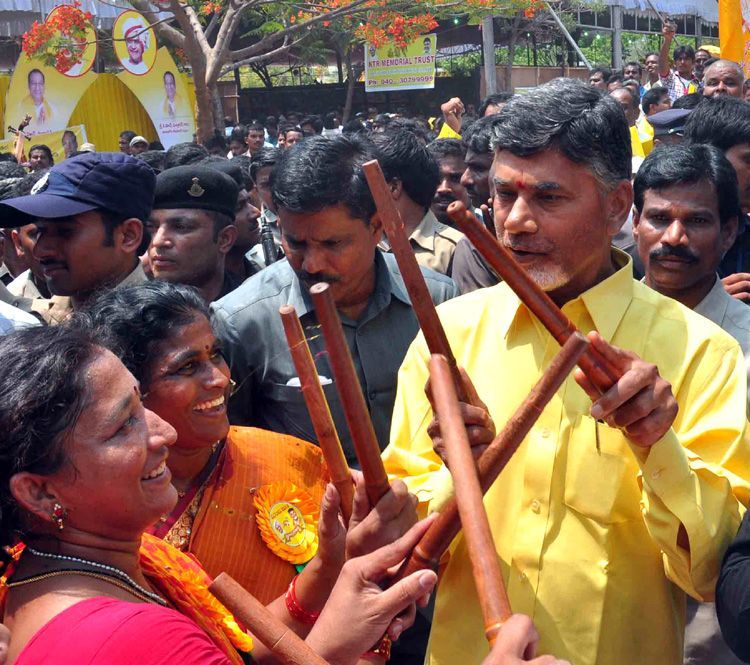 TDP supremo and Andhra Pradesh chief minister designate N Chandrababu Naidu at inauguration of party's two day enclave Mahanadu began at Gandipet in Hyderabad on Tuesday.