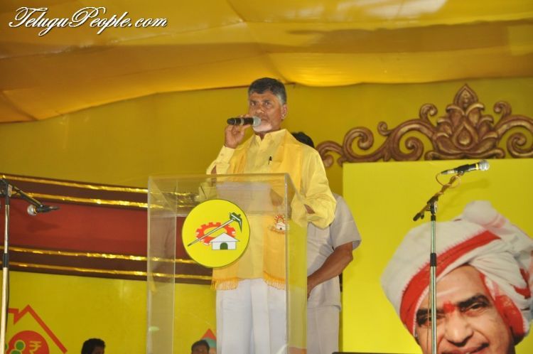 TDP supremo and Andhra Pradesh chief minister designate N Chandrababu Naidu at inauguration of party's two day enclave Mahanadu began at Gandipet in Hyderabad on Tuesday.