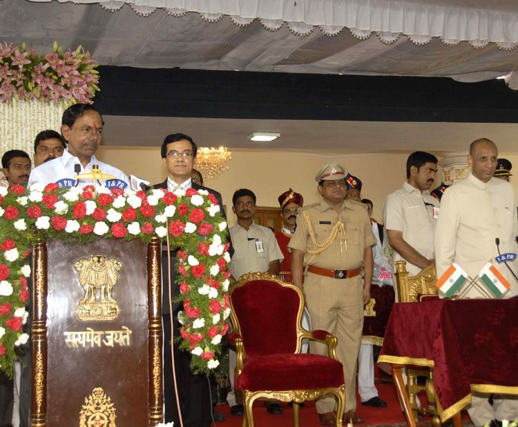 The Telangana Rashtra Samithi (TRS) supremo and chief architect of the separate Telangana agitation, Kalvakuntla Chandrasekhara Rao was on Monday sworn in as the first Chief Minister of the newly created State of Telangana on Monday at a simple ceremony held here at Rajbhavan.