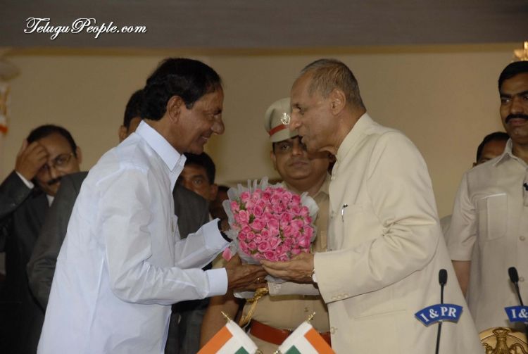 First Chief Minister of New State Telangana K Chandershekar Rao swearing in at Raj Bhavan on Monday.