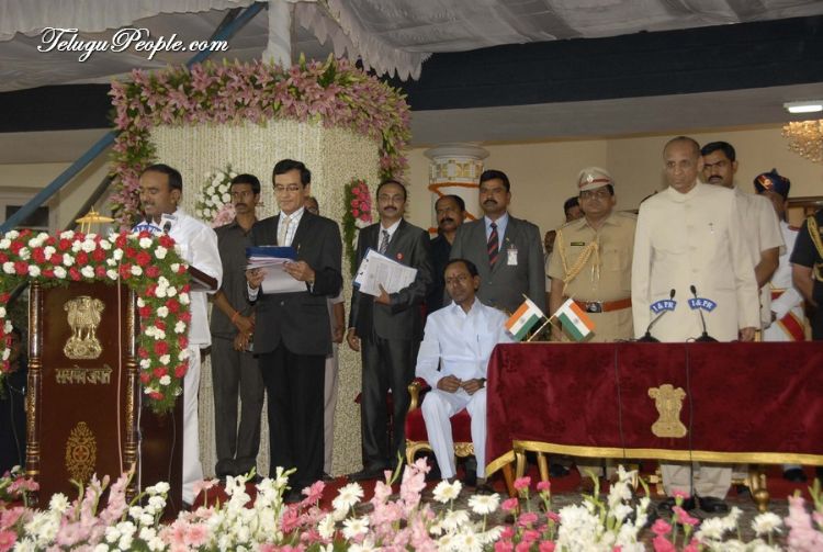 First Chief Minister of New State Telangana K Chandershekar Rao swearing in at Raj Bhavan on Monday.