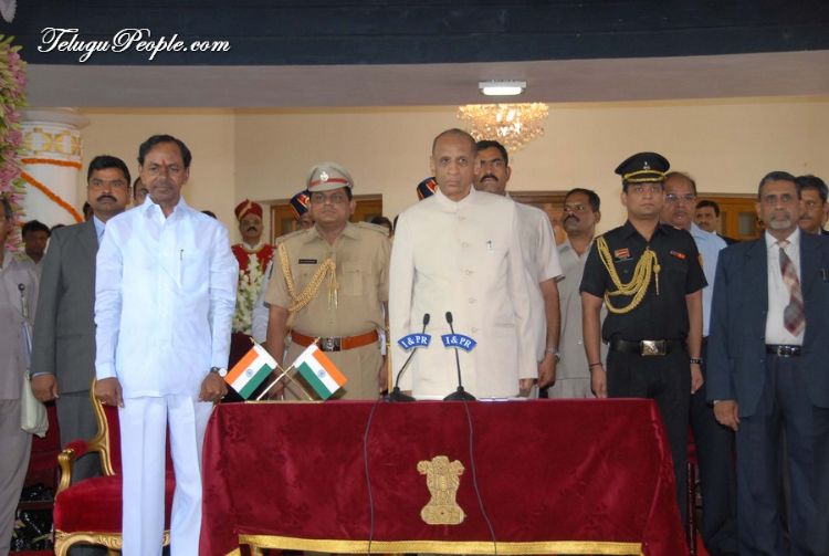 First Chief Minister of New State Telangana K Chandershekar Rao swearing in at Raj Bhavan on Monday.