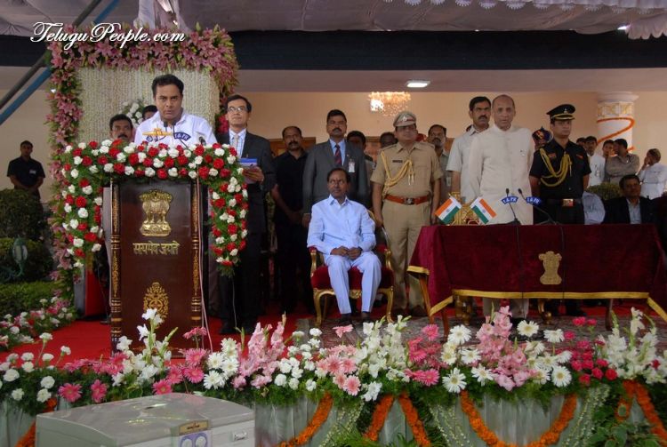 First Chief Minister of New State Telangana K Chandershekar Rao swearing in at Raj Bhavan on Monday.