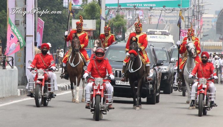 First Chief Minister of New State Telangana K Chandershekar Rao taking salute from police and armed reserve forces at a specially held parade at Parade Grounds in Secunderabad on Monday.