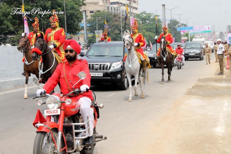 First Chief Minister of New State Telangana K Chandershekar Rao taking salute from police and armed reserve forces at a specially held parade at Parade Grounds in Secunderabad on Monday.